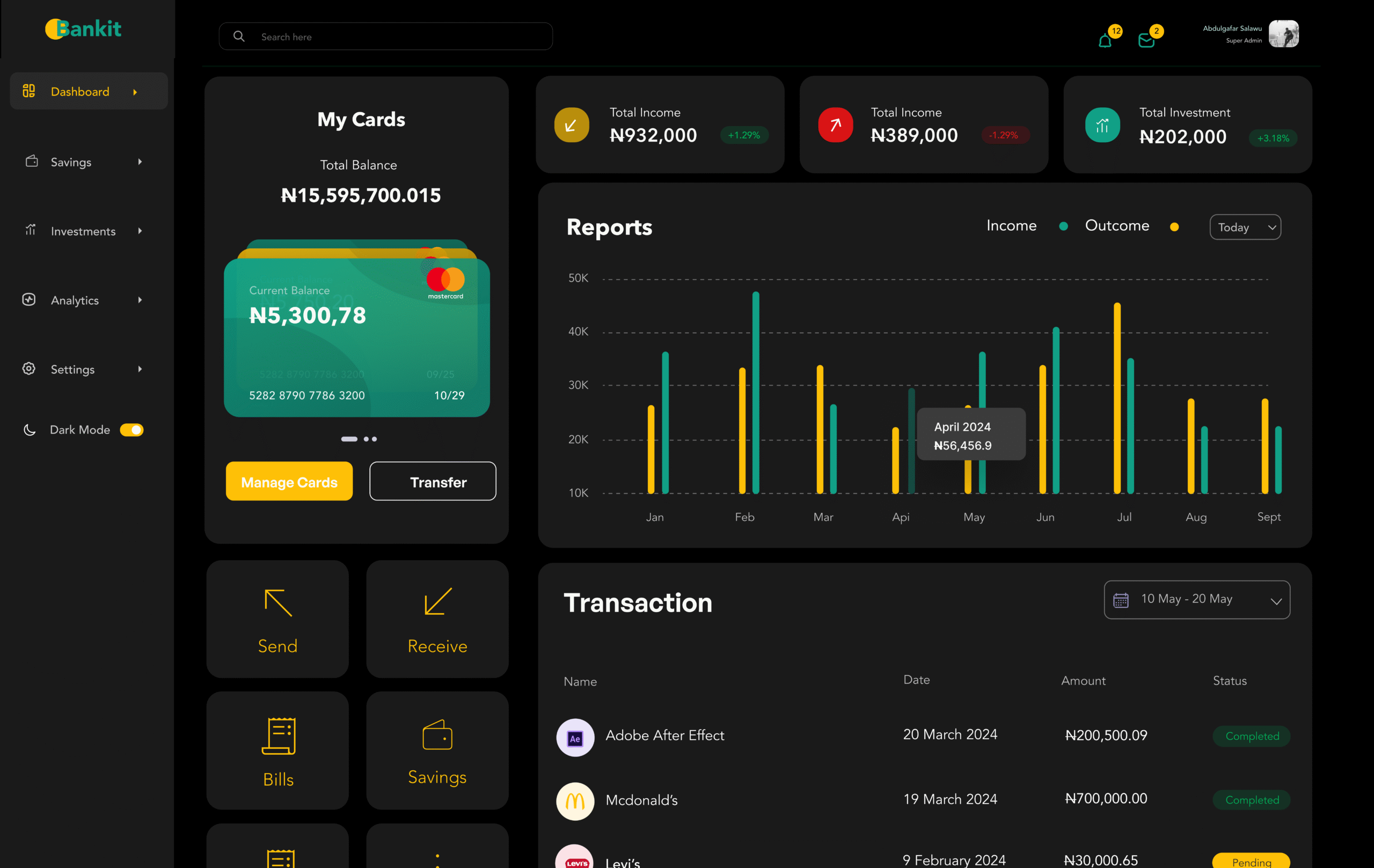 Bankit is a conceptual fintech platform unifying savings, investments, bill payments, fund transfers, and ATM card services in one accessible web application for adult users.